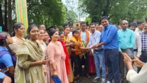 भव्य स्वागत: गांव लौटने पर सुनिता का भव्य स्वागत हुआ, जिसमें अटल चौक से विद्यालय तक बाजे-गाजे और मांदरी नृत्य के साथ रैली निकाली गई।