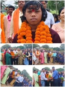 भव्य स्वागत: गांव लौटने पर सुनिता का भव्य स्वागत हुआ, जिसमें अटल चौक से विद्यालय तक बाजे-गाजे और मांदरी नृत्य के साथ रैली निकाली गई।