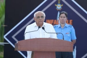 गांधीनगर में गुजरात के मुख्यमंत्री ने वायुसेना के जवानों को दी बधाईः-