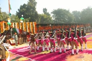 पीलीभीत: रिजर्व पुलिस लाइन पीलीभीत में भव्य परेड एवं देशभक्ति विषयक सांस्कृतिक कार्यक्रमों का आयोजन किया गया। मुख्य अतिथि के रूप में मा0 श्री संजय सिंह गंगवार, राज्यमंत्री (उत्तर प्रदेश सरकार) द्वारा ध्वजारोहण कर राष्ट्रीय ध्वज को सलामी दी गई एवं परेड का मान प्रणाम लिया गया। इस अवसर पर DIG/SP पीलीभीत द्वारा समस्त पुलिस अधि0/कर्मचारीगणों को संविधान में उल्लिखित संकल्प की शपथ दिलाई गई।