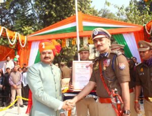 कार्यक्रम के दौरान मुख्य अतिथि मा0 राज्यमंत्री श्री संजय सिंह गंगवार द्वारा DIG/SP पीलीभीत को उत्तर प्रदेश सरकार द्वारा प्रदत्त “महाकुंभ सेवा मेडल” से सम्मानित किया गया। जो जनपद पुलिस के उत्कृष्ट, अनुशासित एवं जनसेवाभाव से किए गए कार्यों का प्रतीक है।