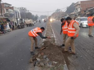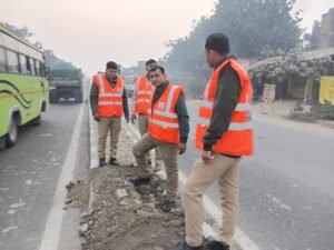 फूलपुर में क्रिटिकल कोरिडोर टीम ने अवैध डिवाइडर कट बंद किए, यातायात नियमों का पालन कराने का दिया संदेश:-