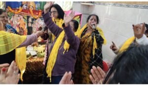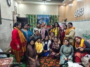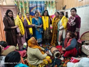 दुलारी समिति की अध्यक्ष राधिका शर्मा ने सभी प्रमुख भजन गायक सारंगधा गौड़, सुषमा गौड़, डॉक्टर संध्या शर्मा, ममता गुप्ता ,कुसुम शर्मा को पीले दुपट्टे पहनकर सम्मानित किया ।