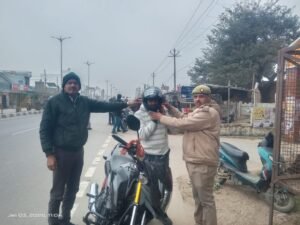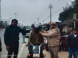 सम्भल: 03 जनवरी 2026: सड़क सुरक्षा को लेकर सम्भल पुलिस पूरी तरह सतर्क नजर आ रही है। जनपद में बढ़ती सड़क दुर्घटनाओं पर अंकुश लगाने के उद्देश्य से आज दिनांक 03 जनवरी 2026 को सम्भल पुलिस द्वारा कलेक्ट्रेट कार्यालय के बाहर हेलमेट जागरूकता अभियान चलाया गया। इस जागरूकता अभियान का नेतृत्व स्वयं पुलिस अधीक्षक सम्भल श्री कृष्ण कुमार ने किया। उनके साथ मौके पर क्षेत्राधिकारी यातायात श्री दीपक तिवारी, यातायात प्रभारी श्री दुष्यंत बालियान एवं यात्री कर माल कर अधिकारी योगेन्द्र सिंह सम्भल भी मौजूद रहे।