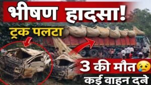 सीतापुरः यूपी के सीतापुर में बड़ा सड़क हादसा हुआ। यहां तीन गाड़ियां आपस में टकरा गई। हादसे में 3 लोगों की दर्दनाक मौत हो गयी। स्थानीय लोगों के मुताबिक भूसे से लदा ओवर लोड़ ट्रक अनियंत्रित होकर पिकअप पर पलट गया। ड्राइवर सहित पिकअप में 4 लोग सवार थे। जिसमें 3 लोगों की भूंसे की वजह से दमघुटने से मौत हो गयी। वही एक शख़्स की हालात खराब है अस्पताल में उसका इलाज किया जा रहा है।